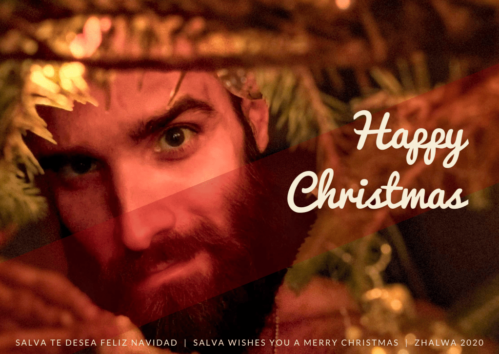 Después de todo este rollo y todas las vueltas que le he dado en mi cabeza a este tema y a si publicar o no la postal este año, verás que en ella te deseo feliz Navidad. ¡Ja! Pero al menos te lo digo desde detrás del árbol, guardando la distancia; y he tenido la cortesía de taparme la nariz y la boca. Eso no se ve todos los días (vale, sí). Ten cuidado, por favor.